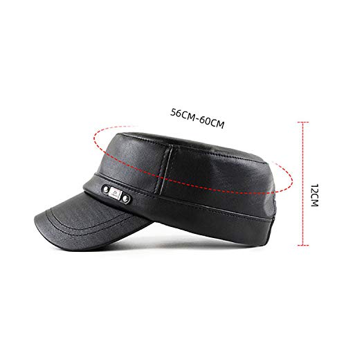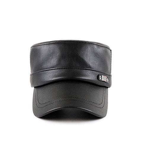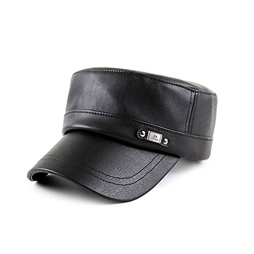 Adantico Gorras de Hombre Plana Gorras de Béisbol PU Sombrero Gorras de Militar Plana Negro