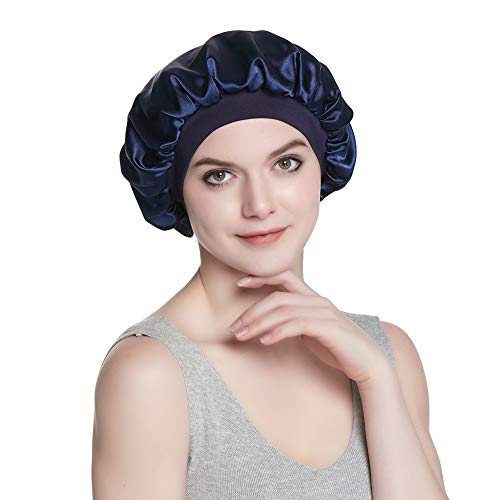 Elástico alto elástico Este capó de satén está hecho con un elástico ultrafino y elástico, lo que hace que este gorro de dormir permanezca en tu cabeza toda la noche incluso si das vueltas y vueltas. Odiamos los dolores de cabeza tanto como tú. Nuestros diseñadores han probado miles de elásticos y, finalmente, seleccionan este elástico. Puedes sentirte súper cómodo con eso cuando duermes.