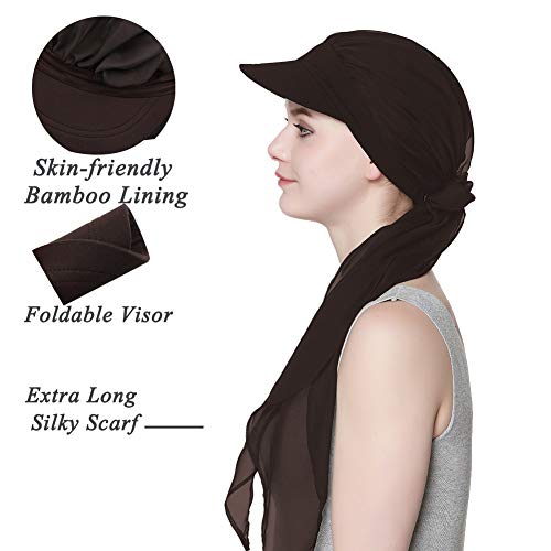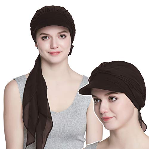 Alnorm Gorro de bambú orgánico con Bufanda Regalos Chemo para Mujeres Café