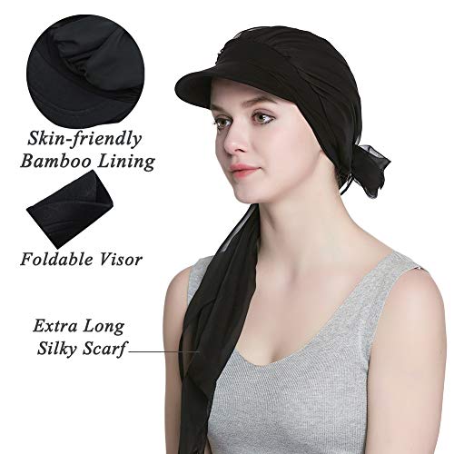 Alnorm Gorro de bambú orgánico con Bufanda Regalos Chemo para Mujeres Negro