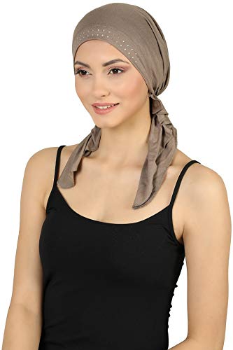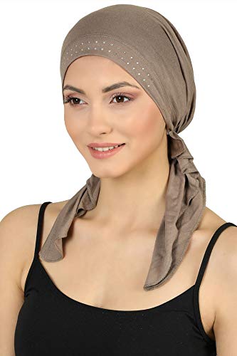 Deresina Bandana de bambú para pérdida de cabello (parte delantera con pedrería para la pérdida de cabello) Visón