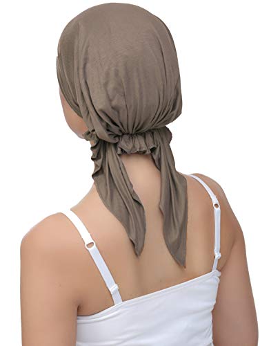 Comodidad: póntelo y listo. No hay necesidad de atar en la espalda y bien acabado para que caiga en el cuello o el hombro dando una sensación instantánea de comodidad. Transpirable, ligero, suave y elástico, esta bandana para quimioterapia mantiene cualquier cuero cabelludo sensible bien ventilado, pero cómoda durante todo el año.