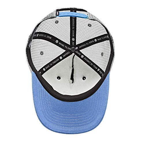 Gorra curvada con cierre de clip ajustable. Parte trasera de malla con lona acolchada y parche tejido en la parte delantera.