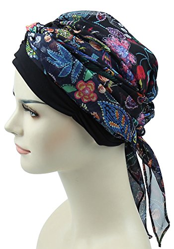 El singular diseño proporciona plenitud, arrugada para dar la apariencia de cabello debajo. Puede también ser usado con halo pelucas, con flequillo o con una peluca.Es un elegante y confortable alternativa a pelucas. Regalo perfecto para traer a una quimio afeitado de cabeza de partido.Bastante quimio regalos para mujeres pacientes de cáncer.