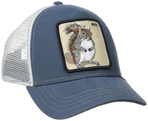 Mens Nutty Hat en azul Goorin Bros. Keep it luz en este diseño bold trucker-style de los con una curva Goorin Bros gorra de béisbol y respaldo de malla transpirable, este sombrero es bueno para cualquier día el sol se ha agotado. características parche con diseño de ardilla ajustable Snap parte trasera para un ajuste personalizable.