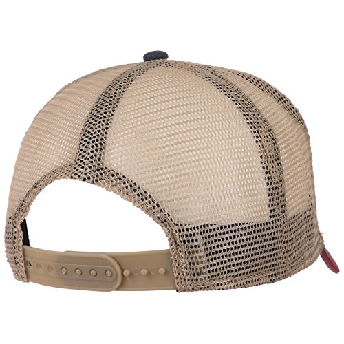 La característica más destacada de la Gorra All American Rooster de la marca Goorin Bros. es la malla de ventilación de la parte trasera, que se ocupa de airear la cabeza en todo momento. Para poder adaptarse a cualquier persona, esta gorra snapback abierta por detrás dispone de un cierre a presión regulable. Su visera curva tiene una longitud de 7 cm, mientras que la altura de la cabeza alcanza los 11 cm.