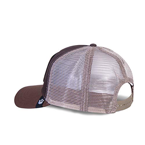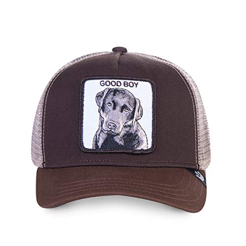 Gorra Goorin Bros perro labrador Good Boy. Color: Marrón con rejilla beige. Gorra 100% original. Estilo: Camionero años 60 con visera curva, rejilla y botón. Incluye un cartón interior moldeable impreso con fotos de la marca que acredita la autenticidad del producto. Parche interior del logotipo Goorin Bros perfectamente alineado al borde interior de la gorra. Símbolo Goorin Bros en el lateral de la visera. Etiqueta de talla ‘ONE SIZE’ recortada en forma de corona haciendo referencia al logo de la marca. Bordado tridimensional del animal que nunca traspasa al interior de la gorra. El contorno o borde del parche presenta un pequeño nudo en el acabado del bordado. Cierre: Snapback Más de 100 años de historia plagados de éxito