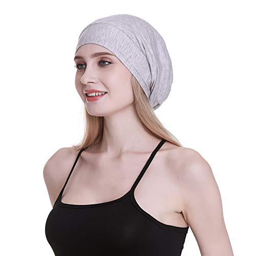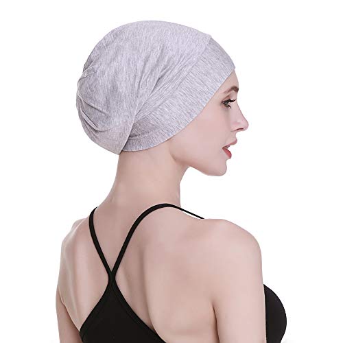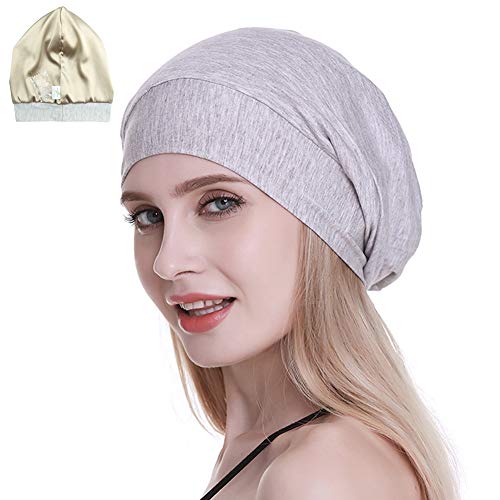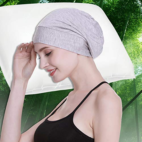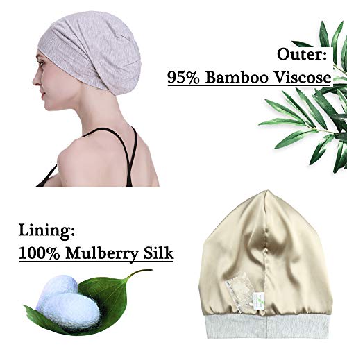 Gorro de seda con forro de satén interior de 19 mm 100% seda de morera exterior de bambú y viscosa natural transpirable para el cabello Gris claro