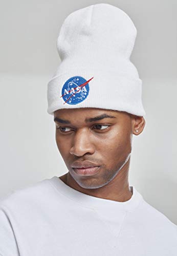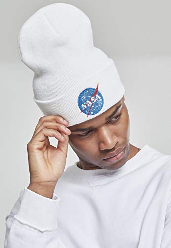 Mister Tee NASA Insignia Beanie Gorro de Punto Unisex Adulto Blanco