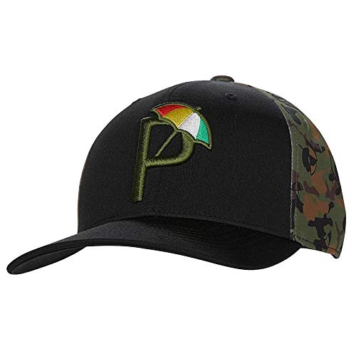 Puma Golf inicia la Invitación Arnold Palmer con equipo de edición limitada diseñado para honrar y celebrar al Rey. Desde su amor por la aviación, hasta la formación del Ejército de Arnie, esta colección rinde homenaje a un hombre extraordinario. La gorra API Camo P Cap cuenta con un patrón de camuflaje único en la parte posterior de la gorra junto con el emblemático logotipo de Umbrella en capas en un logotipo de Puma bordado. La gorra AP Snapback está disponible en cuatro atractivos colores, un tradicional color verde y marrón, gris, púrpura (en honor del Día Internacional de la Mujer que tiene lugar durante la API 202020), y un color rosa, un guiño al amor del Sr. Palmer por llevar rosa. Especificaciones: Logotipo «P» bordado en 3D. Logotipo de gato bordado en 2D Visera curva ligera 110 Cierre a presión. Etiqueta Puma tejida reflectante. 110 Flexfit Tech que absorbe la humedad. Cinta de costura de marca. 65% poliéster, 35% rayón.