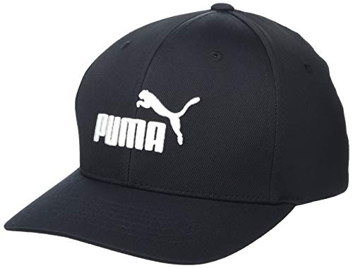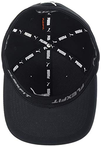 PUMA Gorra de béisbol Flex-Fit para hombre con logotipo de gato grande Negro Blanco
