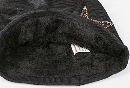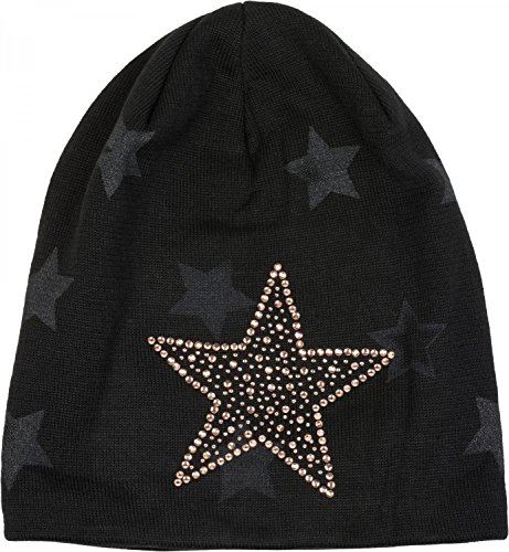 styleBREAKER Gorro Beanie de Punto cálido con Motivo de Estrellas Estrellas de Strass y Relleno Interior Muy Suave Unisex 04024084 Negro