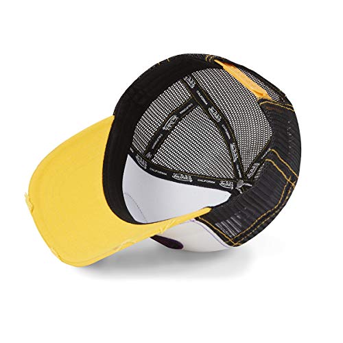 Elegir una gorra trucker Von Dutch amarillo y blanco con diseño de grafico original custom Referencia Summer Yellow, gorra béisbol mujer y hombre bordado Von Dutch Von Dutch morado y negro forma ovalada, visera curvada amarilla, red negra, talla única ajustable.
