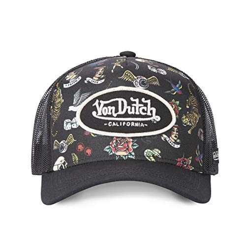 Detalles del producto: Gorra con red estilo trucker Motivo impreso en la parte delantera con motivos estilo tatuaje. Parche de marca bordado en la parte delantera. Ajuste de tamaño en la parte trasera. Composición: 50% algodón y 50% poliéster. Mantenimiento: Se puede lavar a máquina a 30 °C máximo.