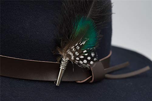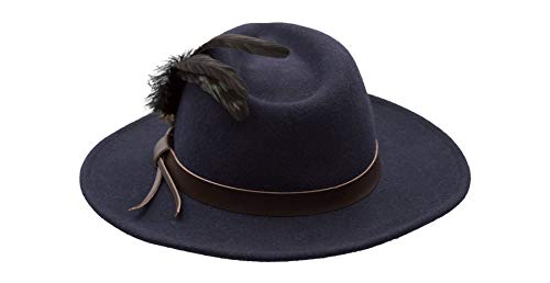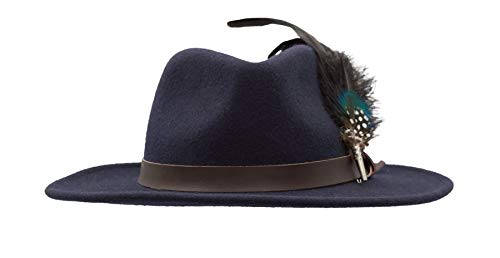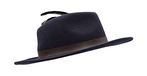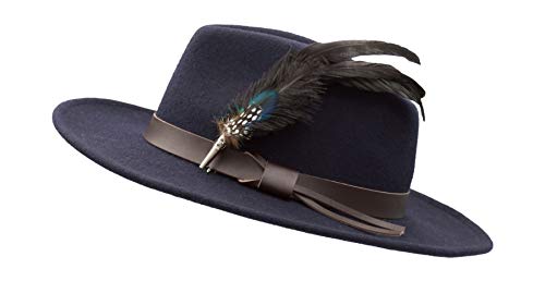 Walker and Hawkes Richmond Fedora Unisex de Fieltro con Cinta de Cuero y Broche con Plumas Plegable Azul marino