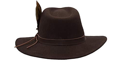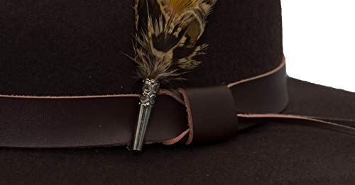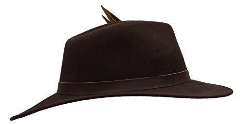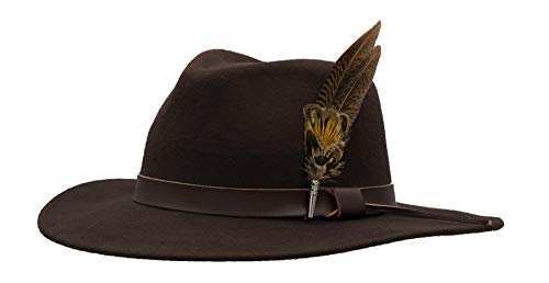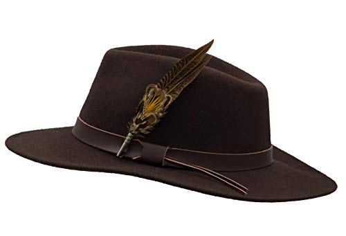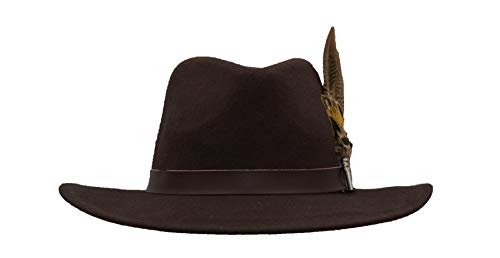 Walker and Hawkes Richmond Fedora Unisex de Fieltro con Cinta de Cuero y Broche con Plumas Plegable Marrón